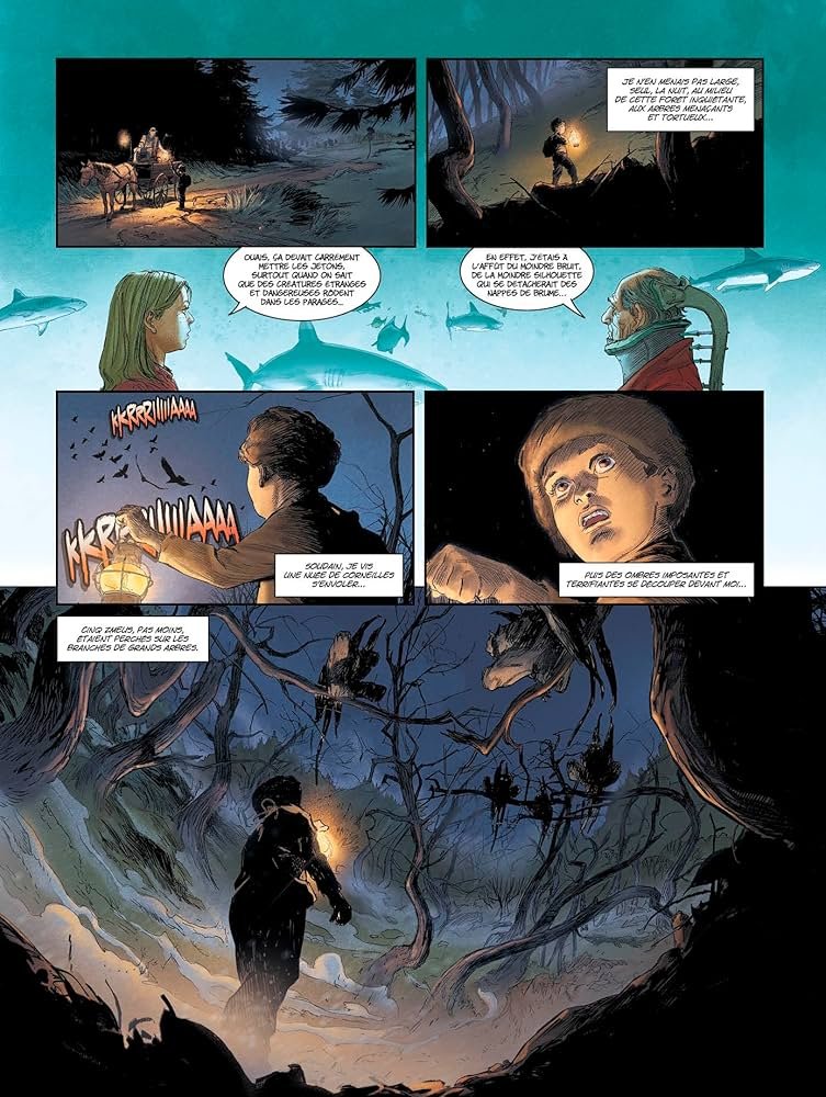 Et voilà, clap de fin pour une saga entamée en mars 2007, presque 20 ans que Bec nous enchante avec Carthago la série mère et ses "petits" Carthago adventures, parus chez les Humanoïdes associés ! Un dernier tome centré sur la relation Donovan/Kane se retrouvant dans les abysses, mais aussi le parcours de Lou avec des allers-retours dans le temps. On alterne ainsi les planches où les deux compères élaborent un plan pour retrouver la jeune femme tout en se remémorant le passé et comment en sont-ils arrivés là ; et des phases avec Lou sur plusieurs temporalités nous rappelant de nombreux passages des tomes précédents. Dans cette ambiance de fin du monde suite aux cataclysmes passés, nos trois personnages évoluent dans une émotion palpable et l'on se demande bien quelle sera leur finalité ! Un renouveau est-il possible ? Un ultime tome captivant et magnifié par le dessin sublime de l'artiste italien Ennio Bufi ! Son trait réaliste fait des merveilles dans les séquences sous-marines ou dans la forêt obscure et menaçante des Carpates. Lou, Donovan, Feiersinger, Kim, ces personnages vont nous manquer, comme dans toute saga marquante, mais le gros point positif de ce dernier album est qu'il vous redonne envie de tout relire depuis le début 😉 Vous verrez en fin de lecture des pages flashbacks de Lou revivant des moments clés de sa vie au fil des tomes précédents et cela m'a invité à me replonger dans cette histoire d'aventure, de passions, d'amour et de lien maternel fort, mais aussi de mégalodon terrifiant ! Monsieur Bec, il va falloir nous inviter à d'autres voyages dorénavant !