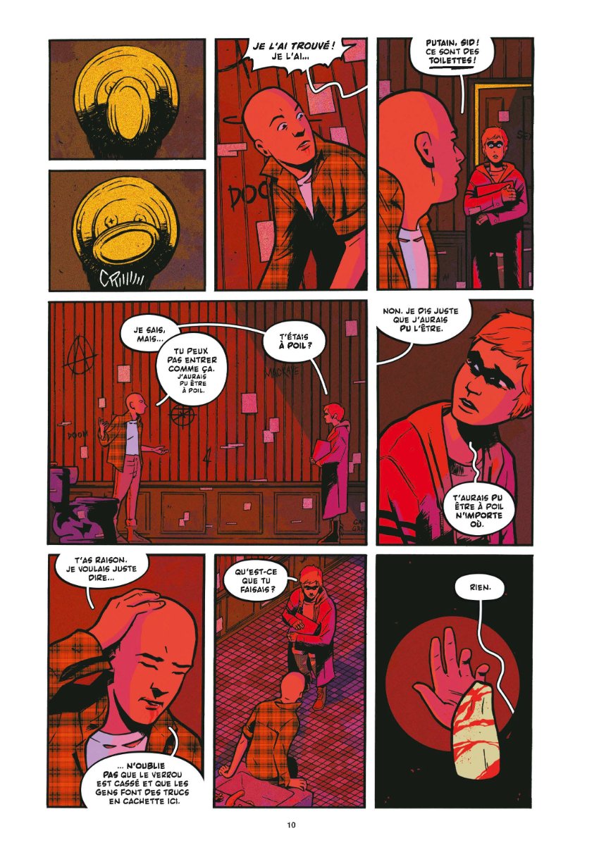 Je ne l'ai pas vu venir celui-là ! Prenez les malfrats de Pulp fiction et Fargo, ajoutez une stripteaseuse malgré elle et un soupçon de super-héros maladroit façon Kick ass, vous aurez une petite idée de ce qui vous attends dans ce pavé de plus de 400 pages ! Oh, j'oubliais un humour irrévérencieux et un langage "fleuri" qui vont vous accompagner tout du long, ne pouvant vous empêcher de vous marrer devant la bêtise humaine incarnée 🙂 On suit donc le quotidien d'un organisme mafieux tenu par Don Burine et ses hommes de main. Une belle brochette de gueules différentes, aux aspirations diverses compose cet univers avec un scénariste distillant peu à peu les motivations de chacun. On parle de sept personnages truculents qui évoluent au fil des pages vers une direction que vous ne voulez, ou ne pouvez pas imaginer 😉 Vices, malices et jalousies, tous les coups sont permis ! Chacun amène sa pierre à un édifice qui a tout du château de cartes prêt à s'effondrer, car le final est tel que décrit dans le pitch : explosif ! Pour illustrer ces (més)aventure, Nico Gems qui réalise ici sa première incursion véritable après des passages dans Metal hurlant. Son style emprunte au manga et aux comics avec des personnages très expressifs et reconnaissables. Il délivre un graphisme nerveux et anguleux dans des planches aérées laissant la part belle aux réactions des protagonistes et à l'action. Car tout va très vite dans cette lecture ultra dynamique avec peu de textes longs au profit de discussions ciselées au couteau dans un verbe argotique poilant. Mon bémol serait sur les scènes de bastons, bien trop chargées où je ne sais plus à qui est ce bras ou cette face réduite en bouillie, ah oui, la violence est assez prononcée, on est dans un récit mafieux quand même 😉 . C'est donc une bien belle découverte qui m'a fait rire très souvent avec ses dialogues désopilants, je recommande !-