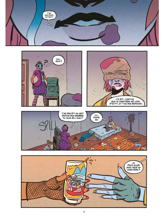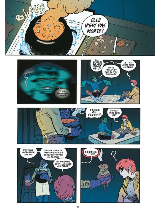 C'est donc la fin pour Sid et ses amis dans cet ultime tome où un grand nombre de révélations vont tomber aussi facilement que certains masques ! Car oui, dans ce troisième opus vous saurez qui ou ce que sont des fameux "étrangers" , la téméraire Sid franchira le "Rubicon" pour découvrir une autre facette du monde et enfin l'affrontement final entre les bandes hétéroclites aura bien lieu dans une tempête d'action ! Un programme chargé pour un scénario toujours aussi complexe à suivre avec des ellipses, des retours en arrière et une partie totalement psychédélique marquée de champignons hallucinogènes ! On se fait balader par Matthew Rosenberg dans une pagination conséquente et toujours aussi séquencée en chapitres. Il redouble d'inventivité pour dépeindre ce monde sans adultes (ou presque) où l'irréel côtoie le réel dans une mince frontière. Son compère dessinateur Tyler Boss poursuit son style minimaliste et nerveux avec ces personnages stylisés au sein d'un environnement pauvre en détails, renforçant l'impression de désolation propre à l'univers. Il ajoute une belle palette de couleurs avec certaines vives voire criardes lors des séquences oniriques ou sous acides 🙂 . Les scènes de batailles sont d'une violence rare, où l'hémoglobine marque de son empreinte les costumes des protagonistes. Un feu d'artifice final, marquant la fin du premier cycle ! Effectivement, ce n'est pas la fin totale pour nos personnages soumis à rudes épreuves, la fin laisse imaginer d'autres aventures qu'il nous tarde de découvrir 😉