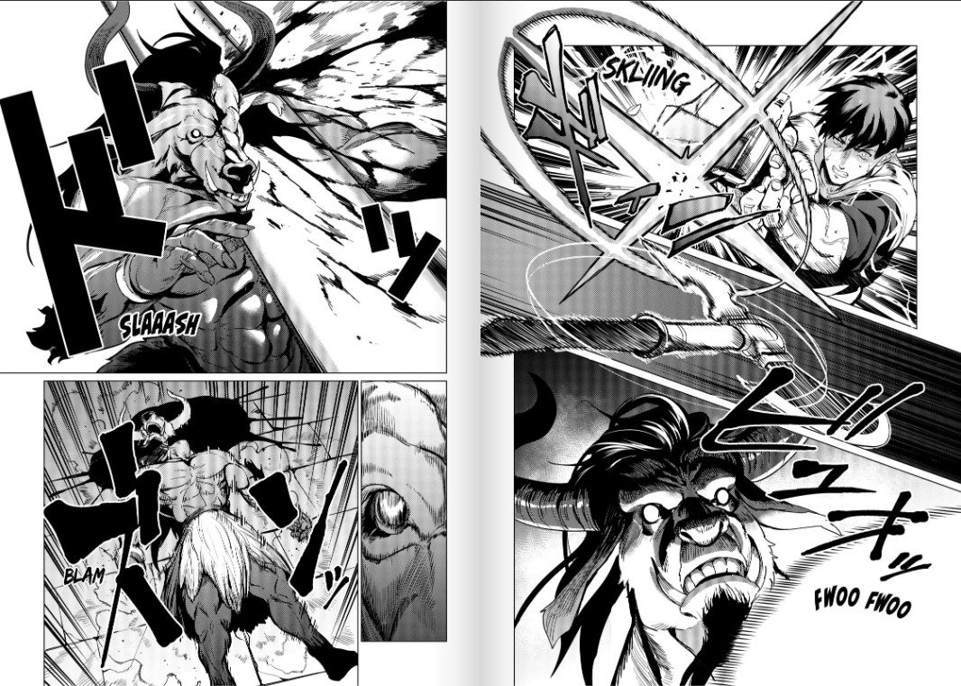 Le personnage de Noor est vraiment rafraichissant : on a un aventurier de rang F qui n’a jamais réussi à apprendre une technique spéciale pour être reconnu comme aventurier à part entière. Cependant, il a développé à l’extrême les techniques de base et il est devenu fort sans le savoir. Car c’est là, le cœur du récit : Noor ignore totalement son niveau et comme il n’a pas eu d’éducation sur les choses basiques de la vie, il se méprend régulièrement sur ce qui l’entoure. Pour lui, un minotaure n’est qu’un grand taureau et il n’y a pas vraiment de mérite à gagner contre une grande vache !!