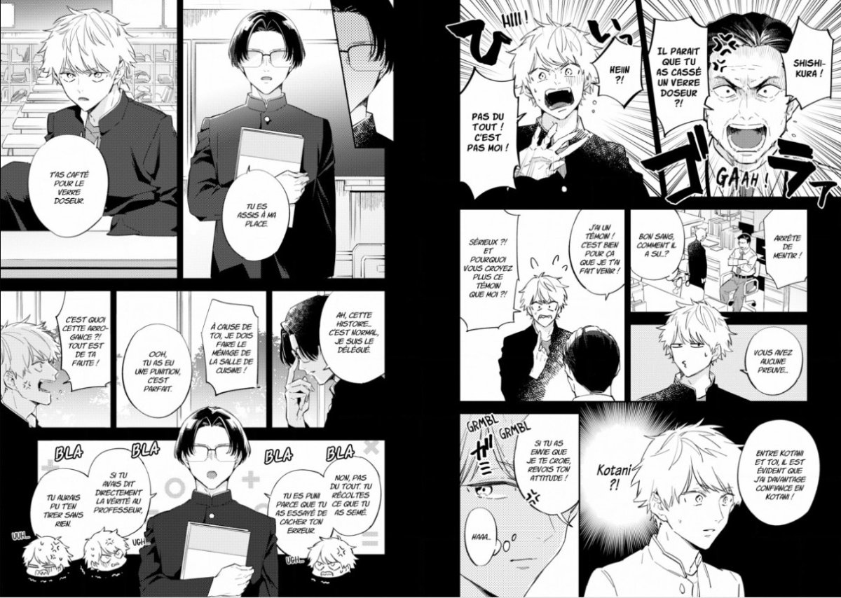Et comme c’est un omégaverse, ni une ni deux, aux premières chaleurs du premier, le second arrive pour le soulager et ils finissent ensemble… Un développement classique, quoi !