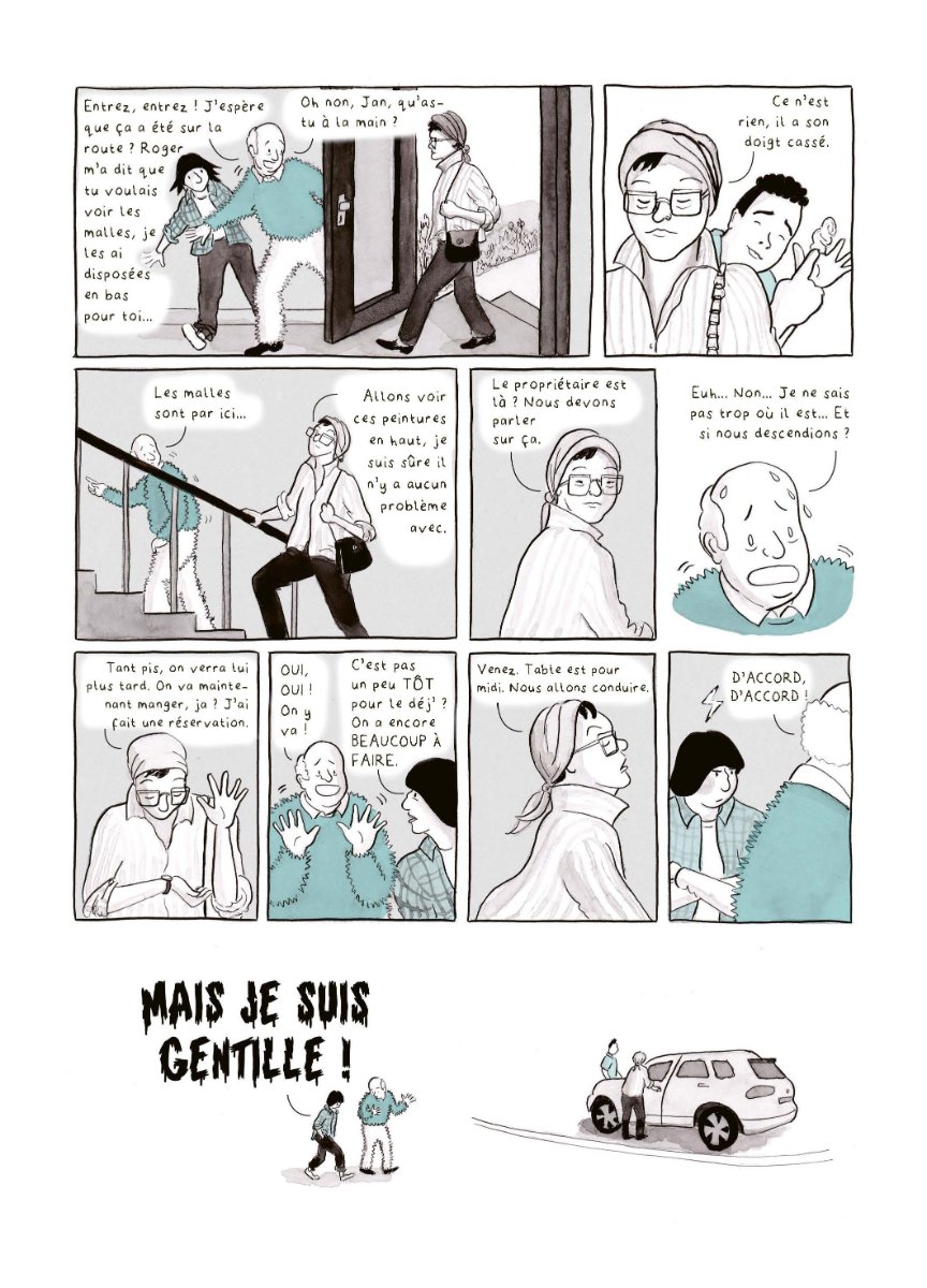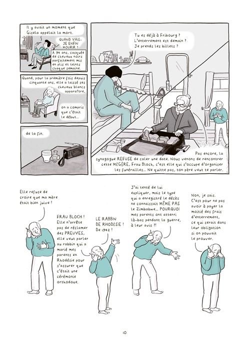 Pour sa seconde incursion dans le 9ème art, Astrid Goldsmith revisite les 5 étapes du deuil de Elisabeth Kubler Ross en nous exposant sa propre histoire : le décès de sa grand-mère et toutes les répercussion annexes. Ainsi, c'est au fil de 7 et non pas 5, étapes/phases de deuil qu'elle raconte avec en premier lieu son départ en camion pour vider l'appartement ainsi que toutes les péripéties que cela comporte pour une jeune femme seule. Elle retrouve son père en route et le long chemin se poursuit, alternant silences gênants et discussions animées. Le travail continue sur place avec une vie entière à vider, les bibelots remémorant des souvenirs, le tapis que désire un membre de la famille, l'état général de l'appartement aussi, avec les travaux à prévoir pour contenter le propriétaire. Tel ou tel objet devient pour un temps le centre d'attention, nécessitant un appel téléphonique pour savoir qui le désire et pour quelles raisons, c'est en effet un "déménagement" complexe et usant pour nos deux personnages. Astrid découvre des secrets de famille éventés par son père devenant bien plus loquace et levant le voile sur des photos ou autres récits liés à sa mère, de confession juive ayant connu l'oppression nazi. On découvre ainsi les coutumes liées aux funérailles juives avec des pratiques ancestrales qui ont du mal à trouver leur place chez la jeune génération. Un logement se vide peu à peu, mais la mémoire s'éveille et remplit peu à peu l'esprit d'Astrid voyant les membres de sa famille sous un nouveau jour et comprenant mieux leur mode de fonctionnement. C'est un roman graphique qui prend son temps et trouvera un écho dans toutes les familles en insistant sur les liens, peu importe la religion. A découvrir.
