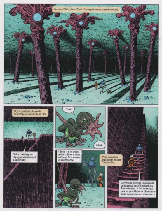 Roman Surzhenko est un dessinateur qui ne cesse de me surprendre. Il avait déjà montré son talent pour reprendre du Western en respectant les codes du genre après sa reprise du personnage de Durango de Swolfs. Il avait aussi prouvé qu'il pouvait nous gratifier sur Thorgal de quelques bien belles planches digne des maitres, et le voici prendre la succession maintenant de M. Vance. rien que ça. Bon Ray Ringo n'est pas le personnage le plus connu ni celui qui a eu le plus de succès dans la carrière de Vance, mais ce n'en n'est pas moins difficile, surtout quand on relance une série, arrêtée maintenant depuis quelques temps. Ses planches sont très bien, peut être presque trop fidèles au style original du western franco belge et je n'aurais qu'un seul bémol à apporter : la colorisation est parfois trop franche, trop marquée à mon goût et elle ne et pas toujours autant en valeur qu'il le faudrait son coup de crayon.