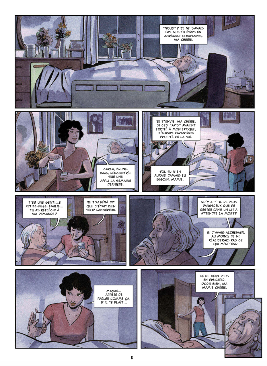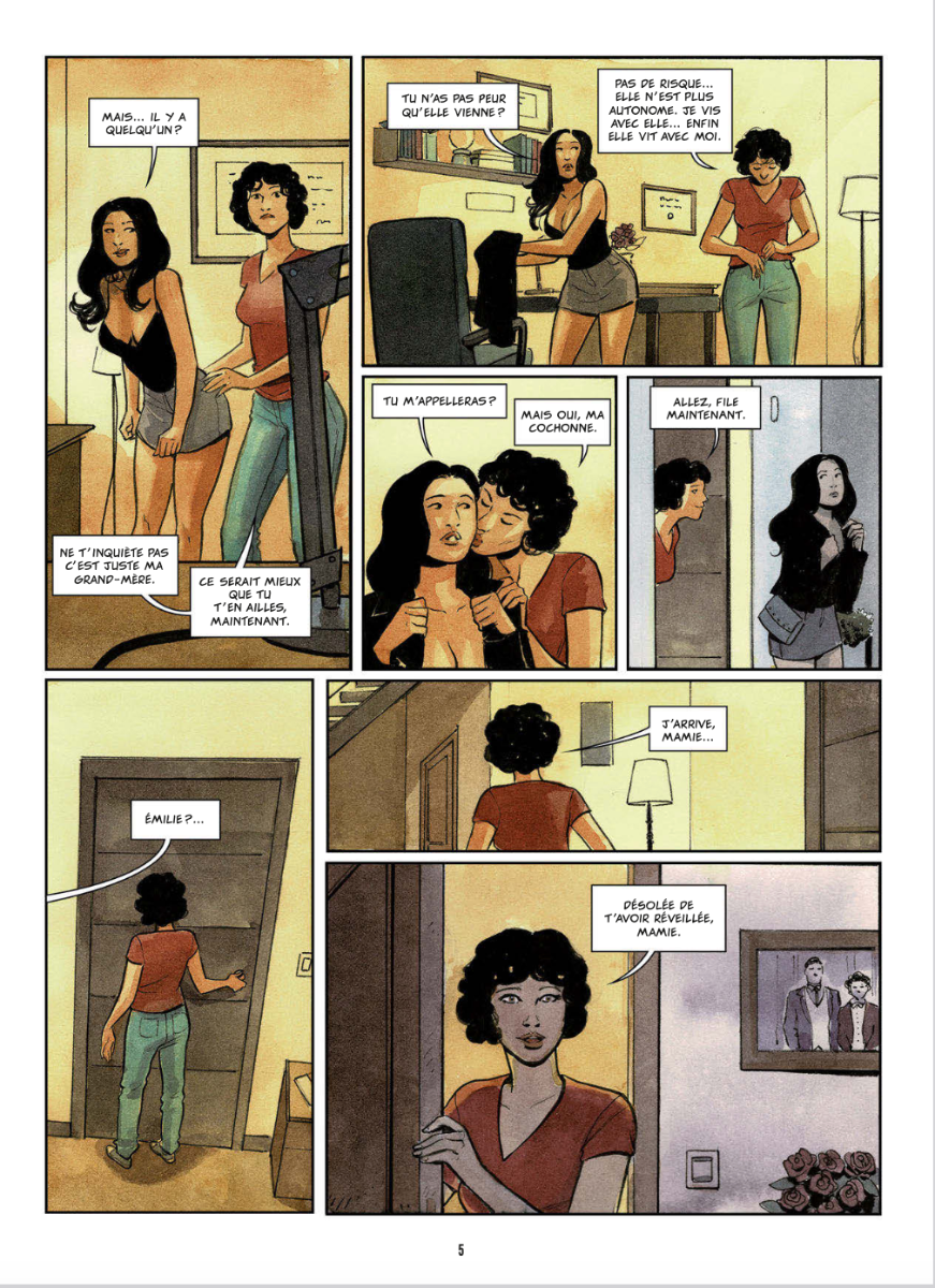 Quatrième collaboration de la talentueuse auteure italienne Elena Ominetti avec l'éditeur Tabou, pour une sympathique histoire de choc générationnel ! Elle amène une petite pointe de science-fiction avec le transfert d'esprit dans un avatar humain et dévoile les différences abyssales du rapport au sexe entre les années 50 et aujourd'hui. Emilie est ingénieure dans ce domaine et voyant sa grand-mère à l'aube de sa mort, décide de la "transférer" dans une "poupée", à savoir le corps d'une jeune et belle femme. Pour Anne, débute une nouvelle vie dans un monde qui lui est bien étranger ! Vêtements, rapport aux autres, drague et surtout, histoire érotique oblige, plaisirs charnels qui sont bien plus libérés et diverses depuis ses jeunes années "dans le noir et missionnaire" 🙂 . On prend plaisir à observer cette vieille dame avec son passé et son histoire, découvrir comment utiliser au mieux son corps de rêve sous les nombreuses sollicitations dont elle fait inévitablement l'objet ! On retrouve sa patte graphique agréable après ONI, plaisirs intimes, paru en 2024 chez le même éditeur, un trait rond et doux qui fait une nouvelle fois des merveilles. Des couleurs pastel certes un ternes parfois mais qui délivrent une élégance subtile au trait et aux différentes ambiances. Une jolie histoire qui n'oublie pas le lectorat de l'éditeur érotique avec de jolies scènes dénudées ponctuant le récit.
