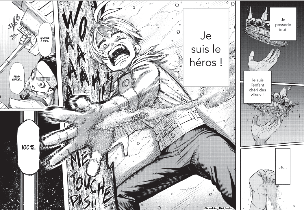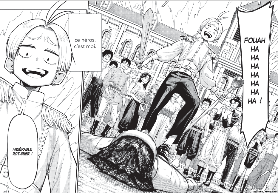 L'auteur, Shinachiku, ancien assistant de Kohei Horikoshi (my hero academia), nous propose ici un shonen avec un concept particulier : il a choisi d'intervertir les rôles des personnages ! Le personnage principal, Tarte Aupoir Croqmonsieur (soulignons la qualité de la traduction et la transposition des jeux de mots), est le personnage arrogant classique qui finit par se prendre un retour de bâton et qui en général finit oublié ayant tout perdu.