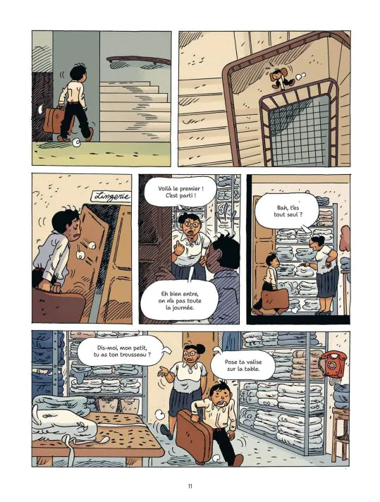 Une année en immersion profonde dans le système éducatif français au sein d'un lycée dans la magnifique ville de Casablanca ! Une année sous le prisme du jeune Mehdi (ou du romancier Fouad Laroui) un peu perdu entre deux cultures. Et pourtant il est brillant ce petit, sa répartie surprend les membres de l'établissement, autant que sa culture générale déjà importante pour un enfant de son âge voire de ses origines ! Car les français en charge de la scolarité respectent dans l'ensemble le programme dicté par l'académie française sans imaginer les profondes dissonances avec la culture marocaine. Mehdi vient d'une famille riche lui ayant donné accès à une bonne éducation "occidentale", sans pour autant renier leur propre culture. Il navigue donc de l'une à l'autre en se liant d'amitié avec des camarades et en s'adaptant aux comportements du personnel du lycée. Du pion faisant l'éloge de Karl Marx, au cuistot conciliant et traducteur, en passant par la ménagère/lingère rarement souriante, c'est toute une galerie de personnages hétéroclites pour un récit qui s'apparente parfois à un vaudeville. Le passé d'institutrice de Carbone la scénariste ressurgit au sein des pages, en démontrant combien l'enfance et l'éducation sont des composantes essentielles à la construction de chacun. La ligne claire de BeneDi rend la lecture facile et agréable. Elle n'hésite pas à grossir le trait sur certaines expressions faciales et fait preuve d'une belle qualité graphique sur des planches détaillées. La devise de l'éditeur Steinkis "Les hommes construisent trop de murs et pas assez de ponts" de Isaac Newton, convient parfaitement à cette histoire maniant avec élégance le colonialisme et l'intégration.