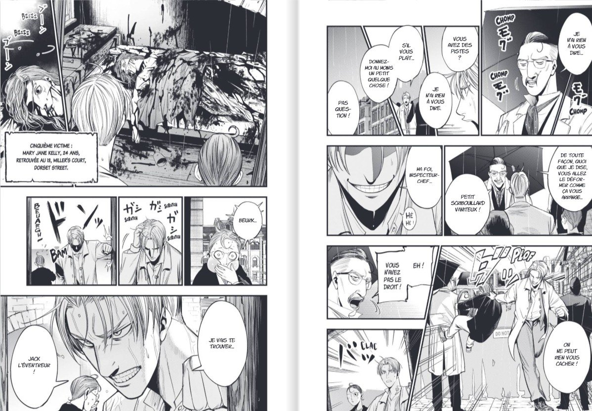 Faire une série sur Jack l’éventreur en le faisant apparaître comme un héros n’est pas chose aisée car comment vouloir donner envie au lecteur de suivre un psychopathe ? Et bien c’est très simple : d’une, la vérité tant attendue sur cette affaire n’a pas encore été dévoilée (on nous l’avait promis pourtant !!) et de deux, on est dans un manga avec liberté de scénario à la clef ! Je vous spoile donc : Jack l’éventreur n’est qu’un nom emprunté au véritable Jack l’éventreur ! Notre héros, bien que rongé par des pulsions meurtrières très importantes, sait être un gentleman par moment mais fait surtout partie d’une organisation secrète du gouvernement visant à éliminer les éléments perturbateurs.