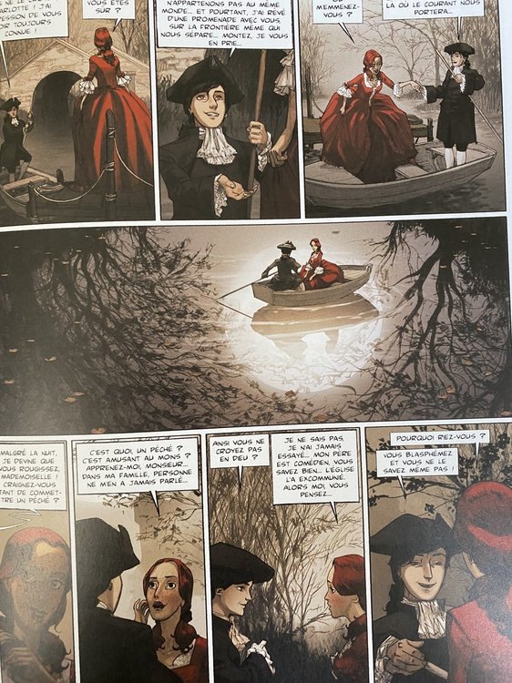 poseidon2 Posté(e) le 11 juin 2007 Share Posté(e) le 11 juin 2007 Bon alors j'ai pris cet album a la place d'un autre pas terrible et je l'ai trouvé magnifique. De plus Bastide et Mezil était ce jour la en dedicace donc j'ai pu avoir un superbe Hugo en dedicace !!!Donc apres je me suis jeté dessuus et honnetement cette BD est geniale. Deja les dessins de Bastide et Mezil sont superbes. Ils collent parfaitement a l'histoire tous en respectant dasn l'ensemble les dessins du maitre Yslaire.D'ailleurs a ce sujet, j'ai lu je ne sais ou qu'Yslaire était leurs professeurs... Et cela est faux. Yslaire était juste membre du jury de l'école de BD qu'ils ont fait a Bruxelles, ni plus ni moins. Ils ont "été choisisé pour cette serie suite a des echanges sur un projet de BD qu'ils avaient en sortie d'ecole.Plus que le dessin qui reste sublime, l'histoire pensée par Yslaire fait penser aux plus grands romancier: On voit tres vite qu'Yslaire n'a pas reflechis a une serie de BD mais a un univers complet. Chaque phrase parlant du passé nous plonge dans un mystere nouveau et nous donne envie de comprendre pourquoi les personnages reagissent de cette facon et en quoi cela joue sur les changements en cours.De plus Yslaire a un don pour decrire cette periode post-pre revolution. En effet on en directement plongé dans l'univers de ces anciens nobles/aristocrates dont les enfants ont une mentalité un peu plus libertine et sauvage. On entre dans un monde en changement, ou les enfants commencent a parler par eux meme, ou les femmes commencent a avoir des souhaits propres et ou l'obscession d'un quete peu faire chavirer le destin d'une famille et l'entrainer.. dans une guerre. Citer Lien vers le commentaire Partager sur d’autres sites More sharing options...