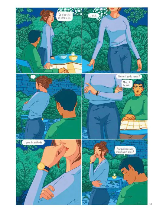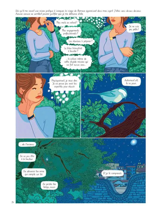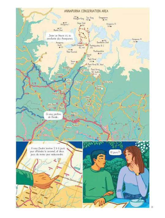Kevin Nivek Posté(e) le 15 mai 2025 Share Posté(e) le 15 mai 2025 Titre de l'album : Kilomètre zéro - Le chemin du bonheur Scenariste de l'album : Maud Ankaoua, Mathilde Ducrest Dessinateur de l'album : Mathilde Ducrest Coloriste : Mathilde Ducrest Editeur de l'album : Casterman Note : Résumé de l'album : Maëlle, célibataire et brillante directrice financière d'une start-up en pleine expansion, ne vit que pour son travail. Quand sa meilleure amie lui demande un service qu'elle ne peut refuser, son quotidien bascule et, contre toute attente, elle part pour le Népal, en quête d'une mystérieuse méthode de guérison. L'ascension des Annapurnas sera le début d'un voyage initiatique qui s'avèrera riche d'enseignements, de rencontres marquantes et bouleversera en profondeur la vie de Maëlle. Mathilde Ducrest magnifie, par sa maîtrise de la narration dessinée, Kilomètre zéro, le roman best-seller de Maud Ankaoua. Critique : J'ai découvert Mathilde Ducrest avec son étonnant Fragile (Casterman), oeuvre en solo intéressante mais non dénuée de défauts; cette fois elle s'associe avec la romancière Maud Ankaoua pour une adaptation littéraire marquante ! En effet ce best seller aux plus de 2 millions de lecteurs se voit magnifié par le trait doux et aux couleurs incroyables de la talentueuse dessinatrice ! Ce chemin initiatique par Maëlle, qui n'est absolument pas disposée à le faire de prime abord, va prendre des voies oniriques et spirituelles sur les contreforts de l'Himalaya. Quel autre paysage peut initier autant de contemplation que cette chaine de montagnes vertigineuses laissant entrevoir des couchers de soleil magnifiques ! On se laisse porter avec cette jeune femme, citadine et investie dans son travail à corps perdu, dans cette randonnée en compagnie d'un sherpa philosophe et terriblement opiniâtre ! Chaque avancée se fait au son des réflexions pleines de sens de Shanti le guide, il illumine de sa sagesse les idées noires de Maëlle et lui fait découvrir un monde totalement inconnu. A l'image des splendides paysages traversés, il l'embarque sur une voie de remise en confiance et de bonheur, on ne peut plus salutaire. Et le lecteur peut ainsi prendre part à ce chemin initiatique et se recréer à son tour. On réalise ainsi que l'on a l'art de se compliquer la vie pour si peu ! Le sous-titre " Le chemin du bonheur" prend tout son sens. Il est parfois nécessaire de relire les réflexions et autres pistes données pour accéder à cette voie, mais quel plaisir ensuite de réaliser qu'il est possible de voir la vie "autrement" ! La dessinatrice immerge le lecteur avec ses couleurs, agissant tel un kaléidoscope sur certaines planches. De l'acidulé, de la chaleur, des gros plans microscopiques rendant le dessin organique, chaque "voie" est illustrée par des planches oniriques et intrigantes. Marchez aux côtés de Maëlle dans l'Annapurna et contemplez ces paysages somptueux, qui sait, vous pourriez y voir votre reflet 😉 . Autres infos : Type de l'album : BD Europeene Lien BDfugue : https://www.bdfugue.com/kilometre-zero-le-chemin-du-bonheur/?ref=44 Voir la totalité de enregistrement Citer Lien vers le commentaire Partager sur d’autres sites More sharing options...