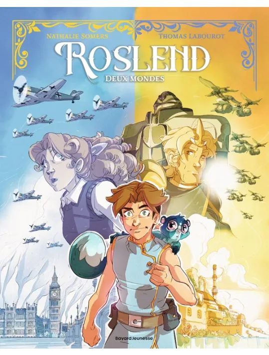 Kevin Nivek Posté(e) le 18 octobre Share Posté(e) le 18 octobre Titre de l'album : Roslend tome 1 Scenariste de l'album : Nathalie Somers Dessinateur de l'album : Thomas Labourot Coloriste : Thomas Labourot Editeur de l'album : Bayard Note : Résumé de l'album : Londres, 1940. Sous le feu des bombardements allemands, Lucan, 14 ans, dois faire face à la mort brutale de son grand-père. En touchant le cadre de l'horloge qu'il lui a confiée, le jeune garçon est propulsé dans un univers extraordinaire et également menacé : Roslend. Y aurait-il un lien entre le danger qui pèse sur ce monde et le destin de Londres ? Le temps est plus que jamais compté pour Lucan qui a désormais une mission : gagner la bataille de Roslend pour sauver... rien de moins que l'Empire britannique ! Critique : Après avoir gagné de nombreux prix littéraires dont celui du Grand prix de l'imaginaire en 2019, Nathalie Somers décide d'adapter sa série de romans "Roslend deux mondes" en BD. Elle s'entoure du dessinateur Thomas Labourot ayant déjà réalisé des oeuvres "jeunesse" type Nevermoor (Jungle) ou encore Washita (Dargaud) . Cela donne une aventure sur deux mondes parallèles menée tambours battants et un graphisme rond et expressif avec un bon sens du mouvement. D'un côté un monde type "fantasy" avec deux royaumes en guerre et de l'autre l'Angleterre en 1940 avec la ville de Londres sous le blitzkrieg allemand. On va suivre le destin de plusieurs personnages dont celui qui semble être le héros principal, Lucan jeune londonien aux rêves d'aviateurs RAF et vivant avec son grand-père horloger cultivant un certain goût pour les secrets. Deux univers en proie à des conflits majeurs, y aurait-il un lien et peut-on passer d'un monde à l'autre ? Les 88 pages défilent à toute allure et rendons hommage au dessinateur qui a su distiller deux ambiances distinctes pour chaque monde visité. Des couleurs un peu plus froides, tirant sur le bleu pour Londres, contrastant avec les couleurs chaudes aux notes jaunâtres du monde ensoleillé Roslend. Trois romans sont déjà parus dans cet univers, nous verrons combien de tomes sont prévus en BD pour cette adaptation dynamique ! A partir de 12 ans. Autres infos : Type de l'album : BD Europeene Lien Partenaire : https://www.bdfugue.com/roslend-tome-1/?ref=44 Voir la totalité de enregistrement Citer Lien vers le commentaire Partager sur d’autres sites More sharing options...