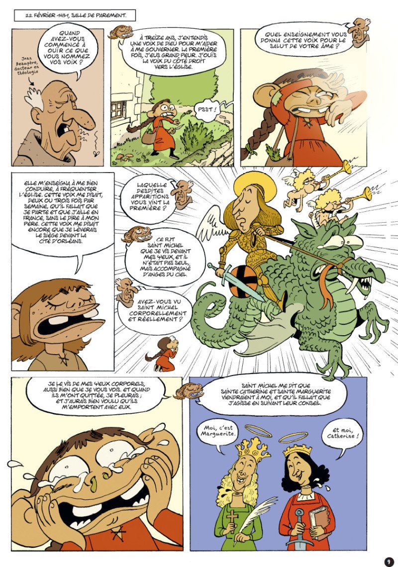 Kevin Nivek Posté(e) le 9 décembre 2025 Share Posté(e) le 9 décembre 2025 Titre de l'album : La véritable histoire de Jeanne d'Arc Scenariste de l'album : Séverine Lambour Dessinateur de l'album : Benoît Springer Coloriste : Editeur de l'album : Autres Editeurs/Auto editions Note : Résumé de l'album : Cette bande dessinée consacrée à Jeanne d'Arc n'est pas un récit de plus agrémenté d'interprétations savantes souvent influencées par une vision partisane de l'Histoire. Cet ouvrage, écrit en grande partie à partir de la transcription de l'intégralité de son procès, rend compte de la vie de cette jeune femme, devenue bien malgré elle un symbole à travers les siècles. Le dessin précis de Benoît Springer, à mi-chemin entre réalisme et caricature, fait redescendre Jeanne d'Arc du piédestal où les idéologues l'avaient placée et dont elle est prisonnière depuis des siècles. La réalité historique est souvent plus terre à terre que la légende. Cette bande dessinée ne rendra pas Jeanne d'Arc plus héroïque qu'elle ne le fut réellement, car elle n'a pas besoin de l'être pour mériter notre attention. Perdue dans l'immensité de l'Histoire, cette jeune fille eut un destin hors du commun, à la fois dérisoire et fascinant. Une vie éphémère broyée par les enjeux de son époque. Cela suffit pour qu'on prenne le temps de mieux la connaître. Critique : Morte le 4 mai 1431 à Rouen, Jeanne d'Arc fascine toujours autant historiens et grand public. Il faut dire que sa vie courte fut chargée et empreinte de mystères encore irrésolus à ce jour ! Passionnée d'histoire, Séverine Lambour réalise ici son premier scénario historique en s'appuyant sur des faits, rien que des faits, en l'occurrence le procès conservé dans les archives nationales de l'Assemblée générale. Cela donne la campagne de la pucelle d'Orléans contre les anglais avec ses nombreuses victoires et la crainte qu'elle inspirait à la perfide Albion, mais aussi sa détention et son exécution suite à un procès long et fastidieux, empreint de religion et de politique. Un condensé de 80 pages écrit en vieux français mais lisible et compréhensible qui nous éclairera d'avantage sur l'incroyable destinée de cette jeune lorraine poussée par un vent divin. Pour illustrer ce récit, le choix a été fait d'insérer au milieu des décors et autres arrières-plans réalistes et détaillés, des protagonistes aux traits grossiers et exagérés. Ainsi Jeanne est petite avec des traits "porcins" contrastant avec l'image que l'on se fait d'elle. Elle alterne les phases de caprices, colères, héroïques et tristesse dans une grande (trop ?) expressivité. Mettant toujours en avant sa mission divine et les fameuses voix qu'elle entend, elle n'aura de cesse d'argumenter ses actes à travers Dieu lui même et pour son "Dauphin" qu'elle admire et souhaite servir du mieux possible. Le mysticisme cède au fondamentalisme religieux bien ancré à cette époque, ce qui rend l'histoire bien plus réaliste. Une narration longue et parfois chargée pour un choix graphique un peu déstabilisant (pour ma part), mais un formidable puits de culture car on le rappelle, tout est vrai 😉 ! Autres infos : Type de l'album : BD Europeene Lien Partenaire : https://www.bdfugue.com/la-veritable-histoire-de-jeanne-d-arc/?ref=44 Voir la totalité de enregistrement Citer Lien vers le commentaire Partager sur d’autres sites More sharing options...