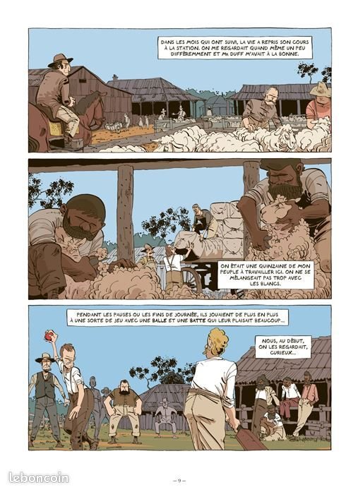 Kevin Nivek Posté(e) le 7 janvier Share Posté(e) le 7 janvier Titre de l'album : Loin des eucalyptus Scenariste de l'album : LF Bollée Dessinateur de l'album : Paul Gros Coloriste : Editeur de l'album : Pictavita Note : Résumé de l'album : L'histoire de la première équipe australienne de cricket a avoir fait une tournée mondiale et composée exclusivement... d'aborigènes. Entre choc des cultures et « freak shows » 1864, Dick-a-dick, travailleur agricole, et ses collègues aborigènes découvrent le cricket. Très vite, leur équipe montre de véritables talents pour ce sport venu de l'autre côté du globe - talents aussitôt mis à profit par leur patron qui voit là une occasion de s'enrichir. Après une tournée australienne couronnée de succès, l'équipe est envoyée en Angleterre afin de se mesurer aux équipes du cru. Sur place, la foule se presse pour voir cette équipe atypique. Et Dick-a-dick et les siens de découvrir cette culture si différente. Mais bientôt le spectacle sportif laisse place à l'exhibition. On ne vient plus voir l'équipe d'Australie, mais bien ces « sauvages » et leurs traditions exotiques. Peu à peu, un autre pan de la culture européenne se dévoile : son racisme, son cynisme, sa violence... Critique : Suite aux difficultés financières rencontrées par Les humanoïdes associés maison mère de La boîte à bulles, cette dernière change de nom mais pas de catalogue fort heureusement ! Ainsi, Pictavita relève le flambeau pour de nouvelles parutions riches culturellement et graphiquement. Le "régional" de l'étape LF Bollée nous fait visiter une nouvelle fois la lointaine Australie (après son superbe diptyque Terra Australis chez Glénat) à la rencontre des aborigènes, ce peuple déjà présent sur place bien avant l'arrivée des colons britanniques. Confinés à de basses tâches, ils sont à l'image de Dick-a-dick de son vrai nom Jungunjinanuke, travailleurs dans des fermes agricoles tenus par des blancs. Non contents d'avoir soumis ces peuples natifs à leurs lois, les anglais ont aussi importé le cricket ! C'est au cours d'une partie amicale lors d'une pause que Jungunjinanuke et ses amis découvrent ce sport. En manque de joueurs, ils sont appelés à prendre part au jeu et voici le début de leur aventure ! Dotés de capacités physiques étonnantes et saisissant très vite les règles, une équipe d'aborigènes est montée, entrainée puis envoyée en Angleterre pour affronter des équipes anglaises. Ainsi née la première tournée sportive internationale de joueurs australiens et c'est par le peuple aborigène qu'elle est réalisée en 1864 ! On ne leur laisse pas vraiment le choix, ils sont très vite placés sur un bateau et en route pour 3 mois de navigation ! Dépaysement, rupture totale avec ses racines et bien entendu, confrontation avec un racisme avéré lors des matchs sur le sol anglais. LF Bollée glisse des tas d'allusions dans les dialogues entre britanniques et natifs, ces pauvres hères sont débarqués dans un autre monde avec une culture totalement différente sans savoir s'ils reverront un jour leur famille et ces fameux eucalyptus. On vit à leur côté cette aventure humaine d'une richesse incroyable ! C'est un splendide hommage à ces sportifs, avec une charge émotive forte. Le trait de Paul Gros est précis, détaillé et doté d'une belle expressivité des visages. Une très belle histoire qui mérite d'être connue en hommage à ces aborigènes, rassurez-vous le cricket passe au second plan 😉 Autres infos : Type de l'album : BD Europeene Lien Partenaire : https://www.bdfugue.com/loin-des-eucalyptus/?ref=44 Voir la totalité de enregistrement Citer Lien vers le commentaire Partager sur d’autres sites More sharing options...