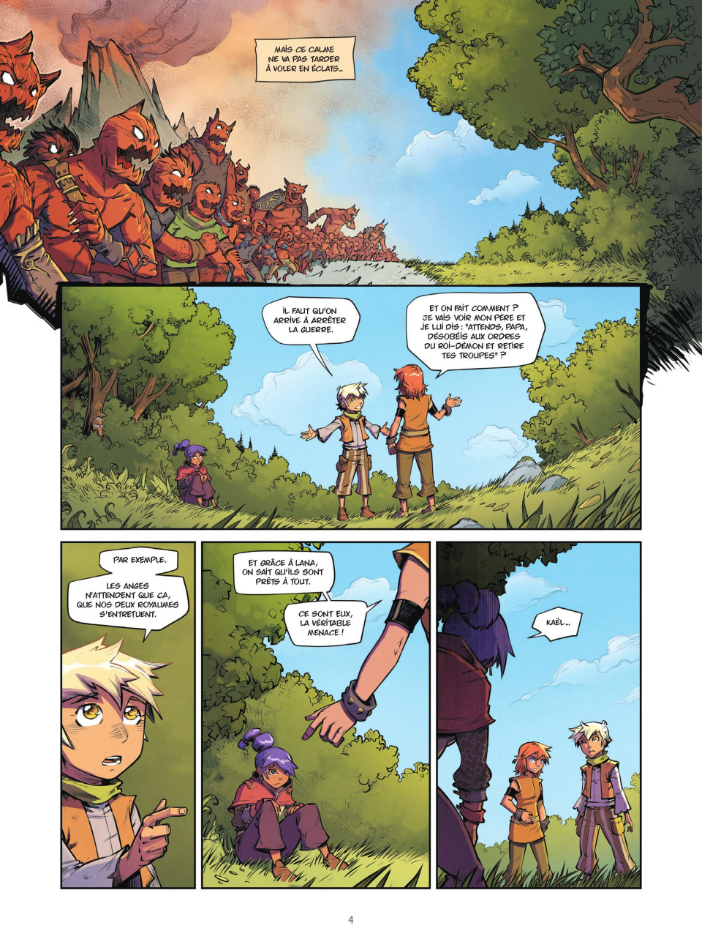 Nova et la forêt des monstres est un titre qui s'intègre parfaitement au choix éditorial de la section fantastique des éditions Komikku. On y retrouve une ambiance propre à l'éditeur, une histoire qui mélange des êtres d'origines différentes dans un contexte fantastique avec des créatures légendaires et/ou inédites. Nova est une petite fille, probablement d'origine elfique, qui est élevée par un grand chien noir à trois têtes (comme Cerbère) où chacune des têtes à un nom propre (Ker, Ber et Ros) et un caractère différent. Ber est le gardien de la forêt, en plus d'être fort physiquement, il sait également se servir de la magia. Stolas est un hibou qui veille également sur Nova, il est un peu comme le professeur ou le sage qui veut aider Nova à grandir et à découvrir le monde même si c'est contre l'avis de Ber. Dès le début, on comprend que la présence de Nova n'est pas normale et qu'il y a un secret derrière cette situation, un secret sur ses origines mais également sur ses capacités. Peu à peu, le récit plutôt « tranche de vie » se dirige vers de l'action et de l'aventure, Nova va élargir sa connaissance du monde et rencontrer d'autres personnages aussi fantastiques qu'intéressants. C'est un bon premier tome, il est facile de s’immerger dans ce nouvel univers et les dessins sont travaillés avec un soin particulier sur les décors et arrière plan. A suivre. A noter : il y a une carte postale détachable à la fin du livre.