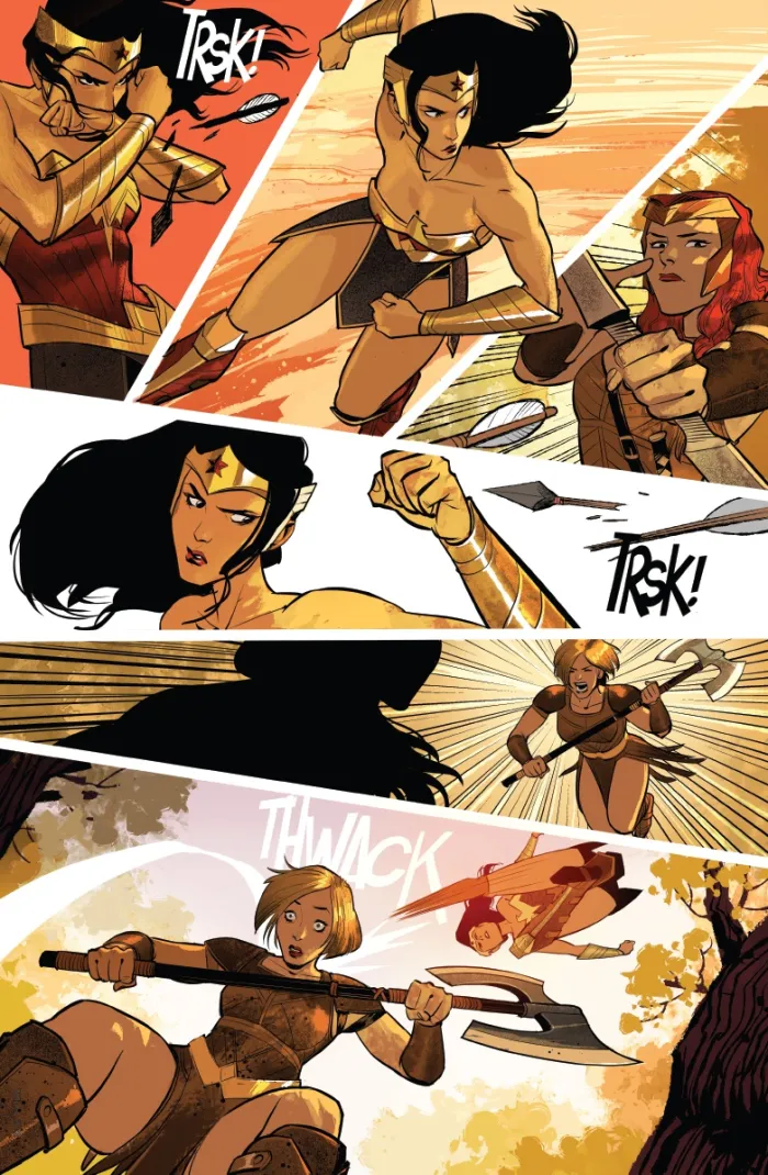 Bref des héros super charismatique qui éclipse presque trop l'histoire. Ici j'ai trouvé Wonder Woman un peu transparente. Harley Quinn et son caractère bien trempé sont bien retranscrits. Mais j'ai trouvé Wonder Woman un peu quelconque. C'est peut-être ce que recherchait Runberg, montrer que WW était une amazone comme une autre, mais c'est un peu trop poussé, éclipsant le personnage au profit des auteurs amazones.