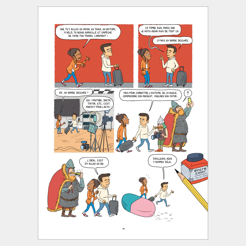 Résumé de l'album :Pour la première fois HugoDécrypte raconte en BD une histoire qui éclaire l'actualité, celle de la Russie. " Pourquoi la Russie ? Parce que ce pays est un géant dont les frontières, sans cesse redessinées, ont marqué et marquent encore notre histoire et l'actualité. Pour comprendre le présent, je retrace son passé, de la fondation de la Rus' au IXe siècle jusqu'à la guerre en Ukraine. Et cette fois-ci, je mets ma caméra de côté : c'est en BD que je pars à la rencontre des acteurs de cette histoire, du chef viking Riourik à Poutine, en passant par les tsars, les révolutionnaires, les espions ou les dirigeants soviétiques. Je vous emmène avec moi dans le plus vaste pays du monde pour vous faire découvrir et vous rendre accessibles plus de mille ans de légendes, de conquêtes, de manipulations et de conflits sans fin. " HugoDécrypte