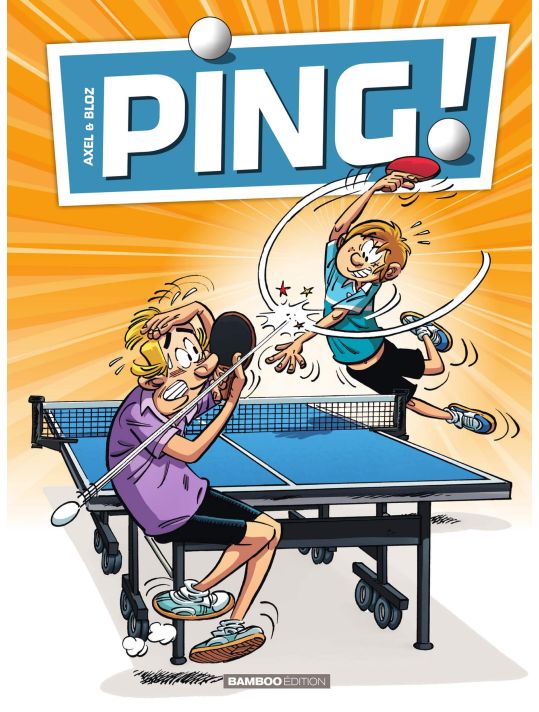Surfant sur le phénomène des frères Lebrun, les éditions bamboo nous proposent cette petite série de bd d'humour sur l'univers du tennis de table. Coup de bol j'ai pratiqué un moment, même si je pense que notre cher @poseidon2 connait le sujet encore mieux que moi. Et inutile de vous dire que cette bd est réservée aux amateurs de Ping, car les autres risquent vite de passer à côté d'une grande partie des gags à cause du vocabulaire technique spécifique employé. Bref, Ping ! s'adresse d'abord aux fans, qui ont envie de lire une bd détente sur leur univers préféré. L'humour y est très tranquille et gentil. Une bonne trouvaille pour vos ados qui se lancent dans ce sport pour prolonger le plaisir.