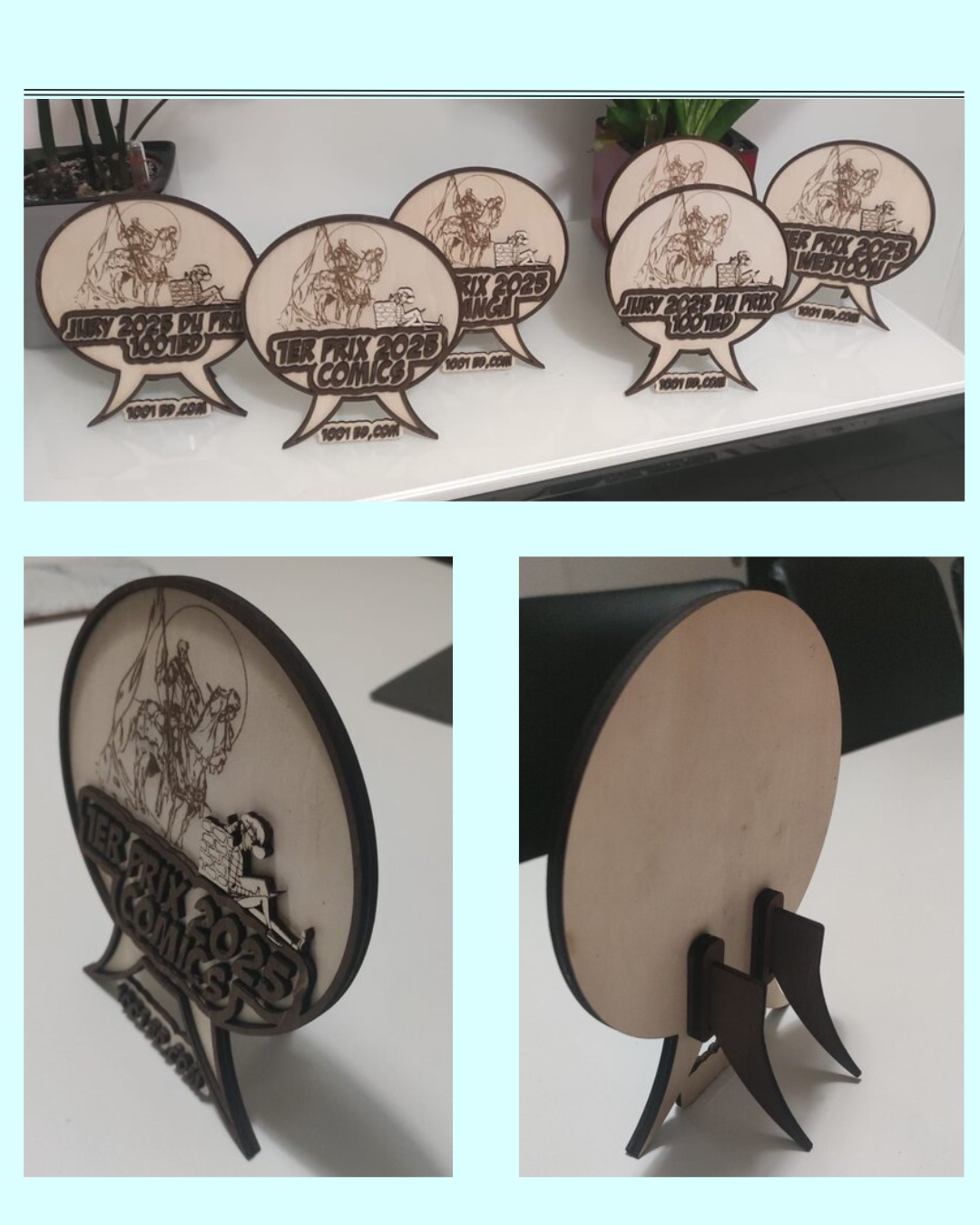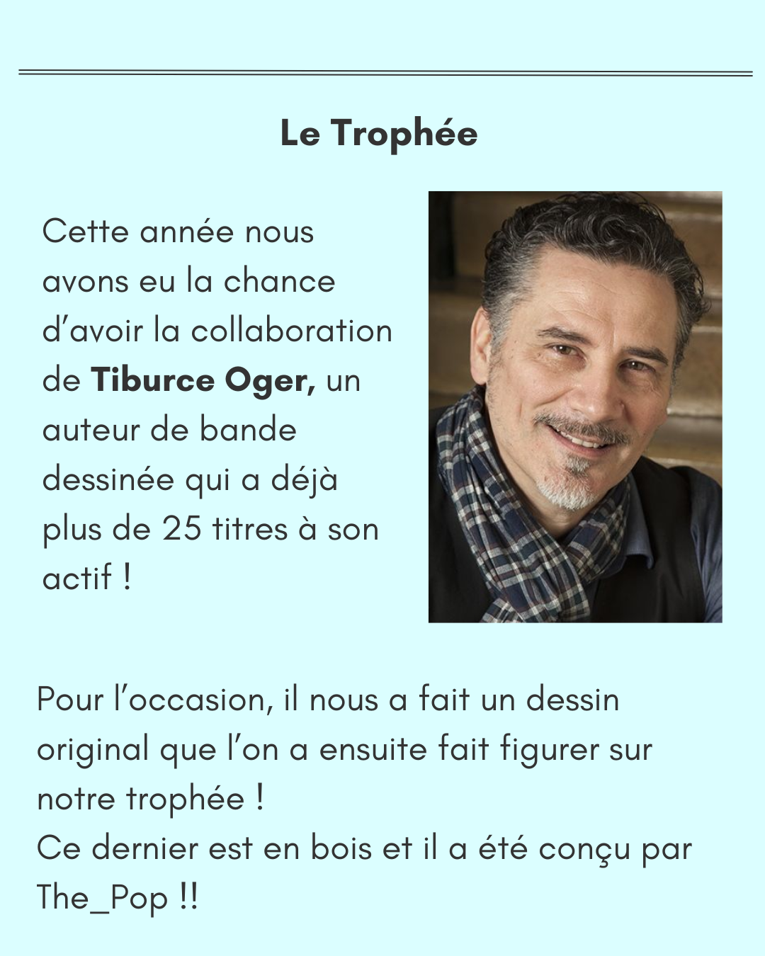 Avec un trophée spécial dessiné juste pour nous par Monsieur Tiburce Oger lui-même. On n'est pas peu fier.